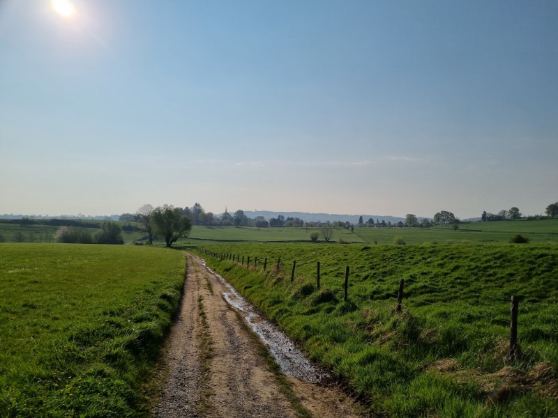 Ter hoogte van huisnummer 31a verlaten we de weg en lopen verder over een landweg. Deze gaat over in een 'holle weg' en voert ons langs een Camping. Het is schitterend weer en de eerste mensen genieten al van het zonnetje voor hun tent!
